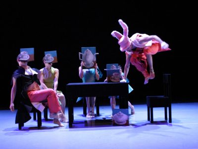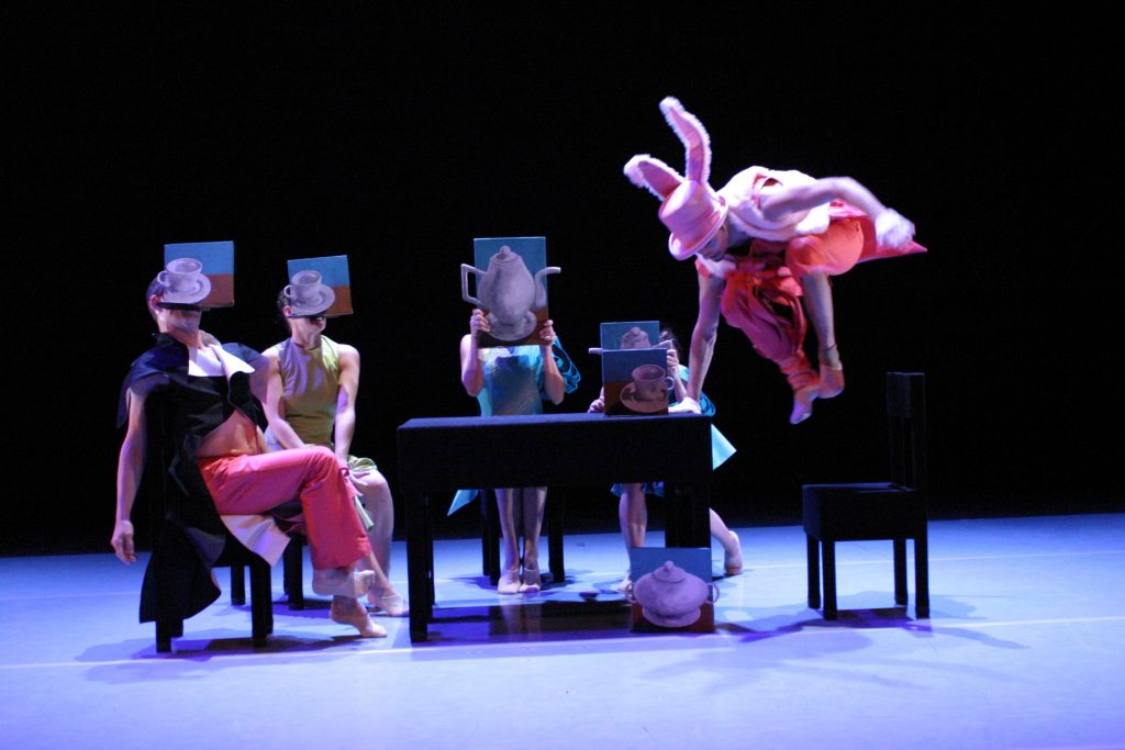 La coreografía tan surrealista como las Alicias, los bailarines de Ananda Dansa traducen con el lenguaje de sus cuerpos situaciones que reflejan las emociones y las situaciones de la obra, pero con una estética totalmente contemporánea y una técnica coreográfica depurada y de gran calidad.